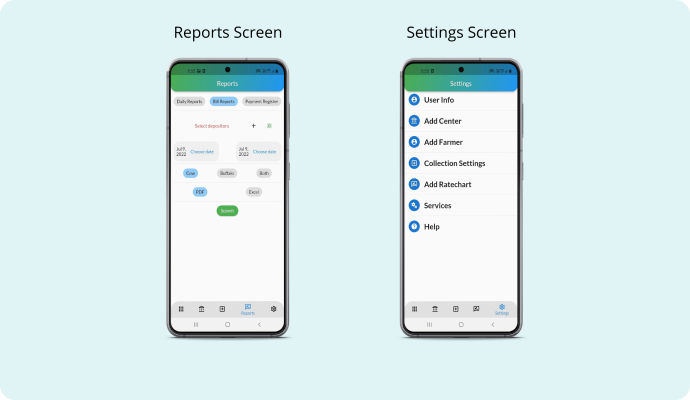 Milkolect - A simple and easy milk collection app which not just emphasis on milk collection but provides analysis for the user. User can connect to a Bluetooth device to receive analyzer, weighing scale data. External display facility can be enabled as per user's choice. Users can add milk collection centers, plants, BMC and farmers. Complete solution for Dairy Plants, BMC , VLC and Farmers. Easy download daily depositions and collections data in PDF and CSV format.